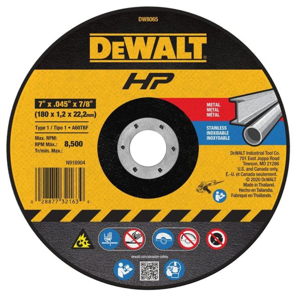 Dewalt DW8065 – 7″ X 0.45 X 7/8″ Type 1 High Performance Cutting Wheel