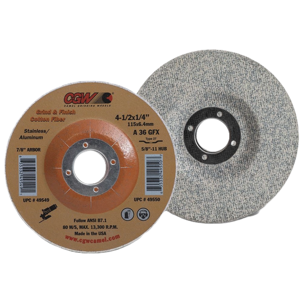 CGW Abrasives 49549 4-1/2″ X 1/4″ X 7/8″ Aluminum Oxide Type-27 Cotton/Fiber Disc 25 Pack