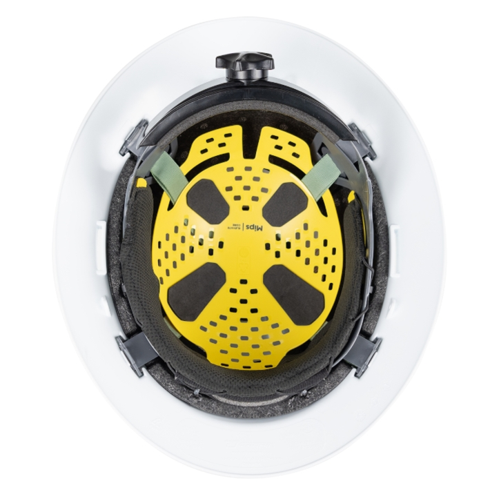 ANSI Type II Full Brim Safety Helmet with HDPE Shell and Mips® Brain Protection System, 4-Point Textile Suspension, Wheel Ratchet Adjustment and 4-Point Chinstrap
