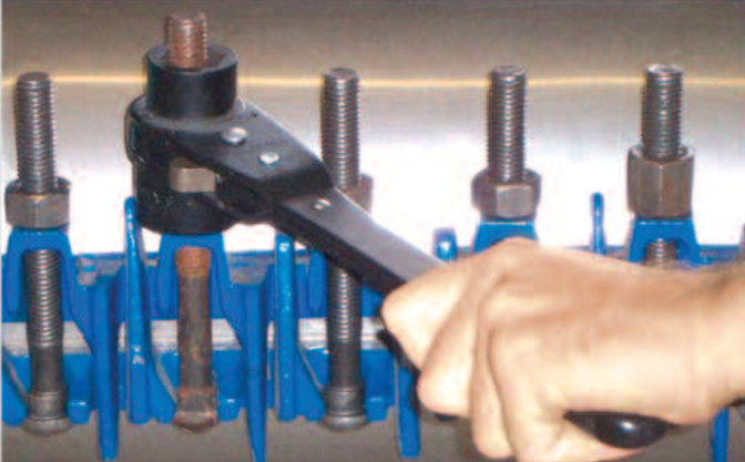 The ideal tool for quickly and easily tightening or loosening nuts and bolts on flanges, couplings, long threaded shafts, repair clamps, service saddle nuts and more. A toolbox favorite of mechanical contractors.