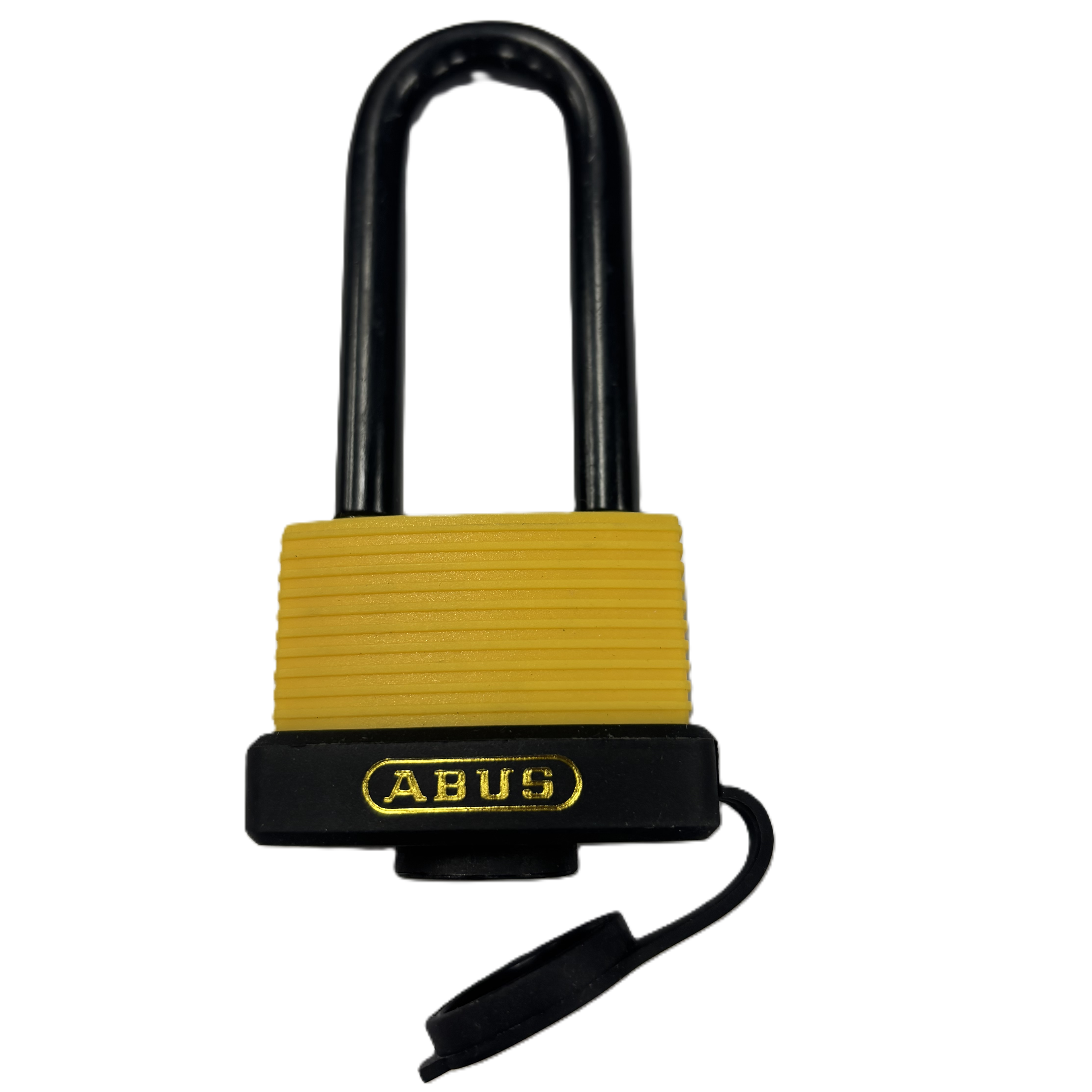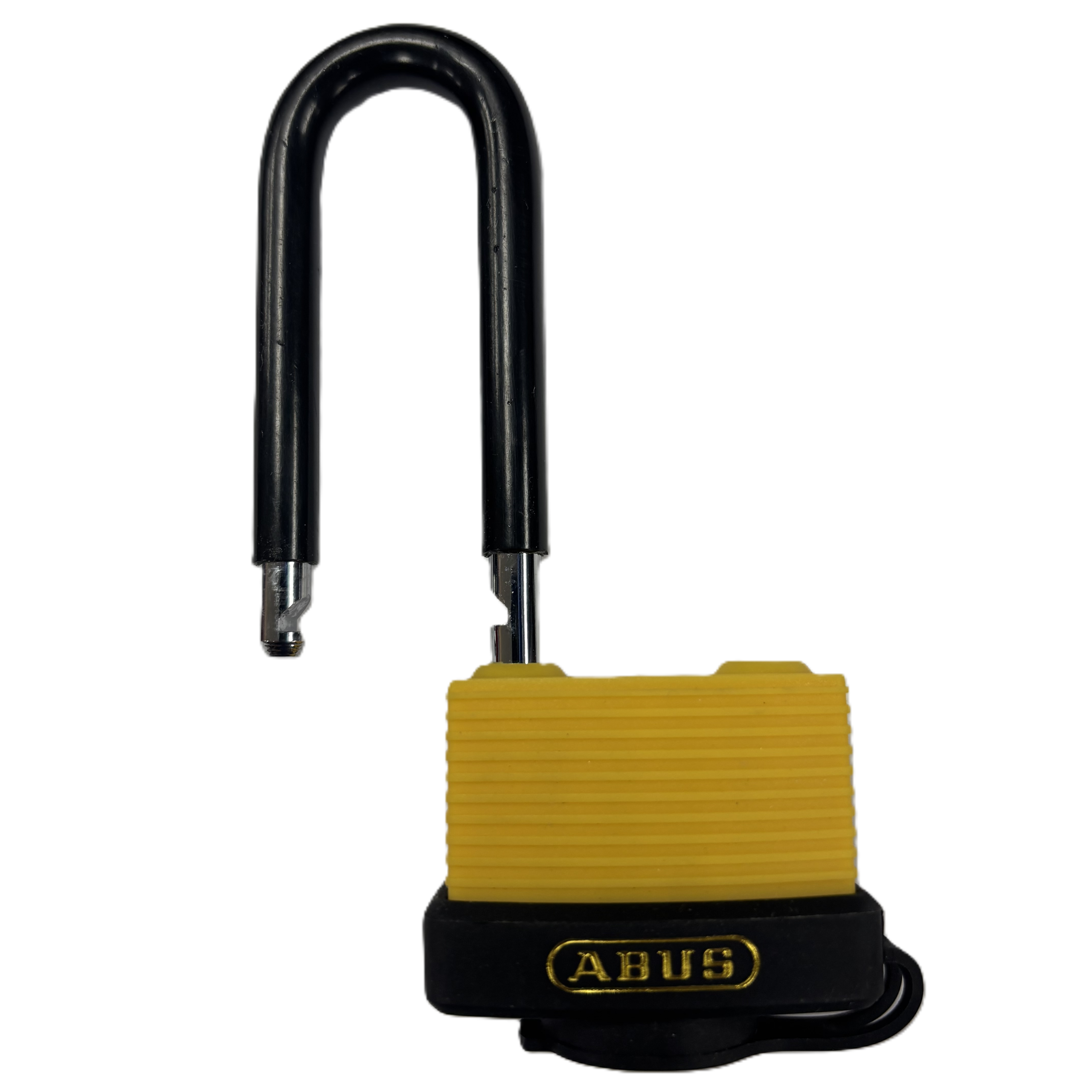 - Shackle made from hardened steel with plastic sleeve
